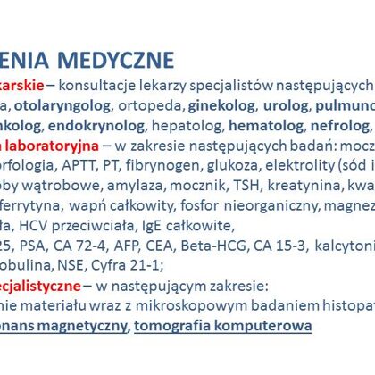 Wsparcie w Chorobie Nowotworowej - np. badania specjalistyczne, domowa opieka medyczna, zagraniczne konsultacje medyczne i inne.