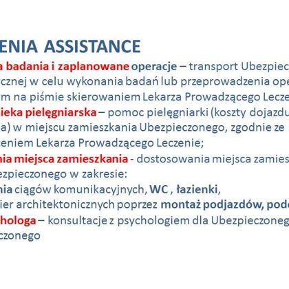 Świadczenia Assistance: |